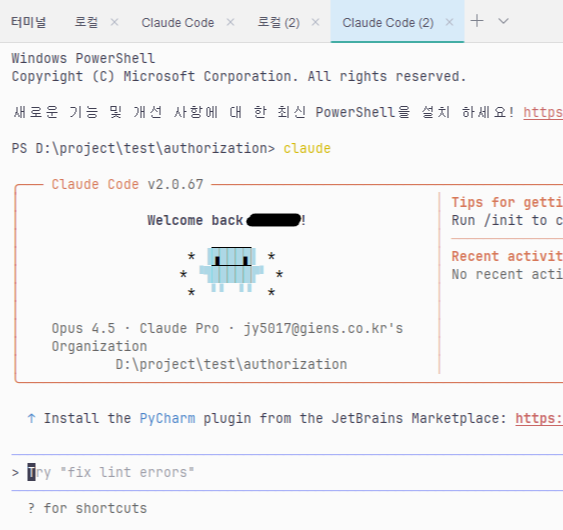 설치 후 위 이미지처럼 상단바에 클로드 로고가 나타나면 성공이다. 혹 나타나지 않는다면 인텔리제이를 재시작하면 된다. 클로드 로고를 누르면 터미널에 귀여운 클로드 채팅창이 나오고 여기서 클로드와 대화하며 코딩을 시작하면 된다.