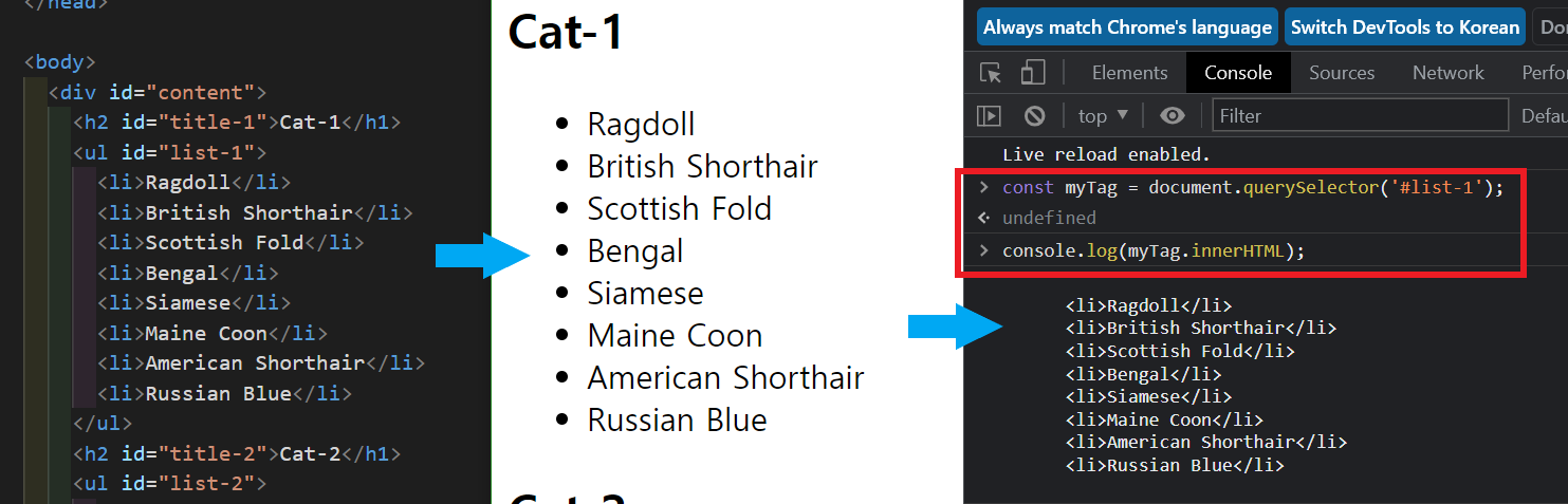 > 요소 안의 정보를 확인할 수도 있지만 내부의 html 자체를 수정할 때 자주 활용된다.