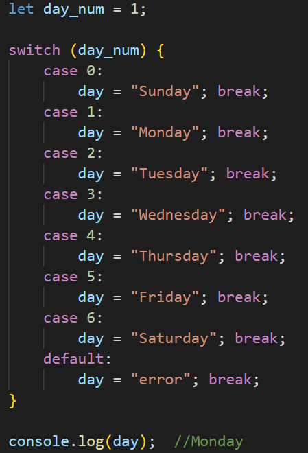 switch 두 가지 예시 모두 수행할 명령 자리에 값을 할당하는 코드를 적었지만