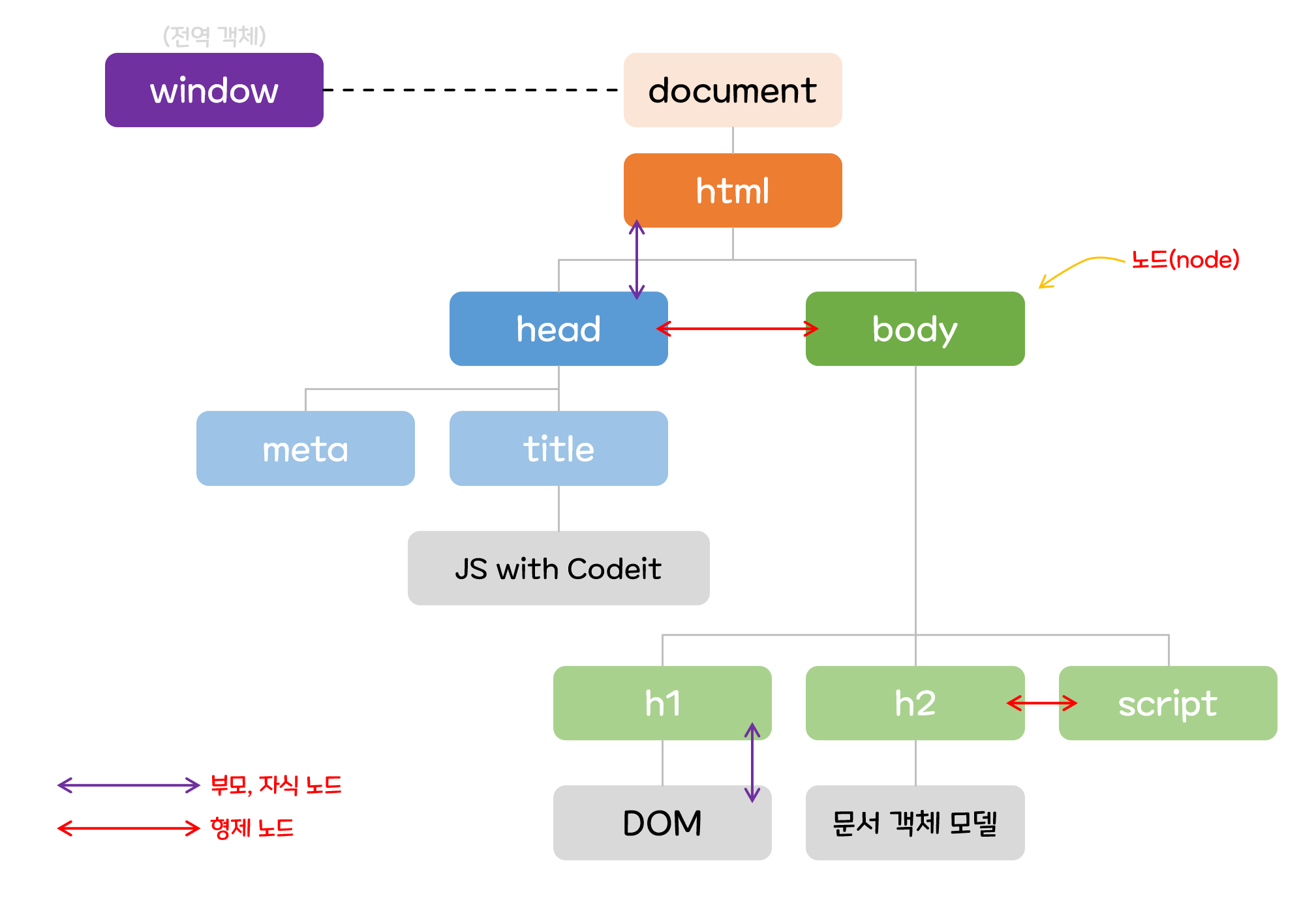 - 문서 노드 : dom의 진입점이 되는 document 노드